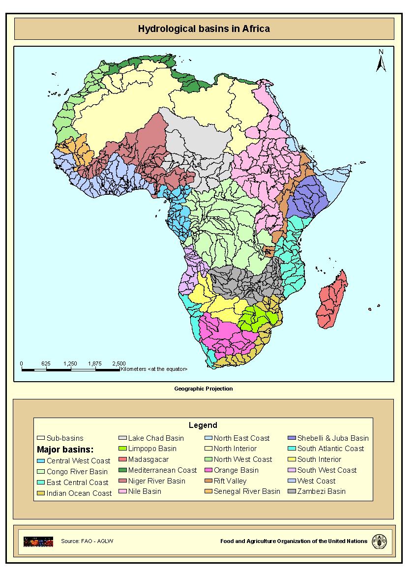 Major hydrological basins and their sub-basins. This dataset divides the African continent according to its hydrological characteristics.